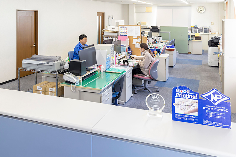 業務を担当しています。業務は、営業からの指示書を受け、紙の手配をし、印刷工程の管理・調整のほか、外注業者への配送、スケジュール調整、納期の確認、お客様への納品まで、すべてを管理する『要』の仕事です。あらゆることに気を配り、様々な関係書と情報を共有し、お客様の依頼にお応えしています。未経験での入社でしたが、先輩や上司が丁寧に教えてくださるので、安心して仕事に取り組むことができました。また、子どもの学校行事などで気兼ねなくお休みが取得できる環境も整っています。とてもやりがいのある仕事なので、これからもスキルアップし続けていきたいと思っています。